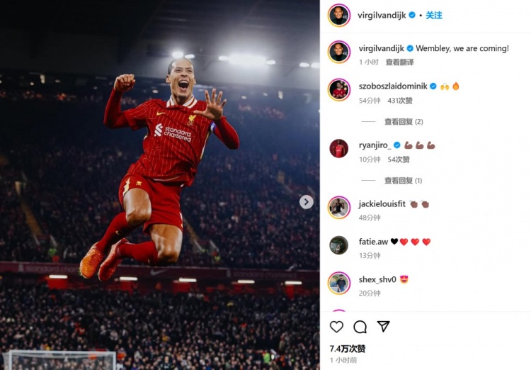 同場(chǎng)建功!范迪克&加克波社媒慶祝晉級(jí):溫布利,我們來了! 2月7日訊 利物浦在本輪聯(lián)賽杯4-0大勝熱刺,加克波和范迪克先后建功。第34分鐘,薩拉赫右路得球送出傳中,門前努涅斯倒鉤沒踢到,柯蒂斯-瓊斯漏球,后點(diǎn)加克波低射得手。第80分鐘,利物浦左側(cè)角球機(jī)會(huì),麥 2025/02/07