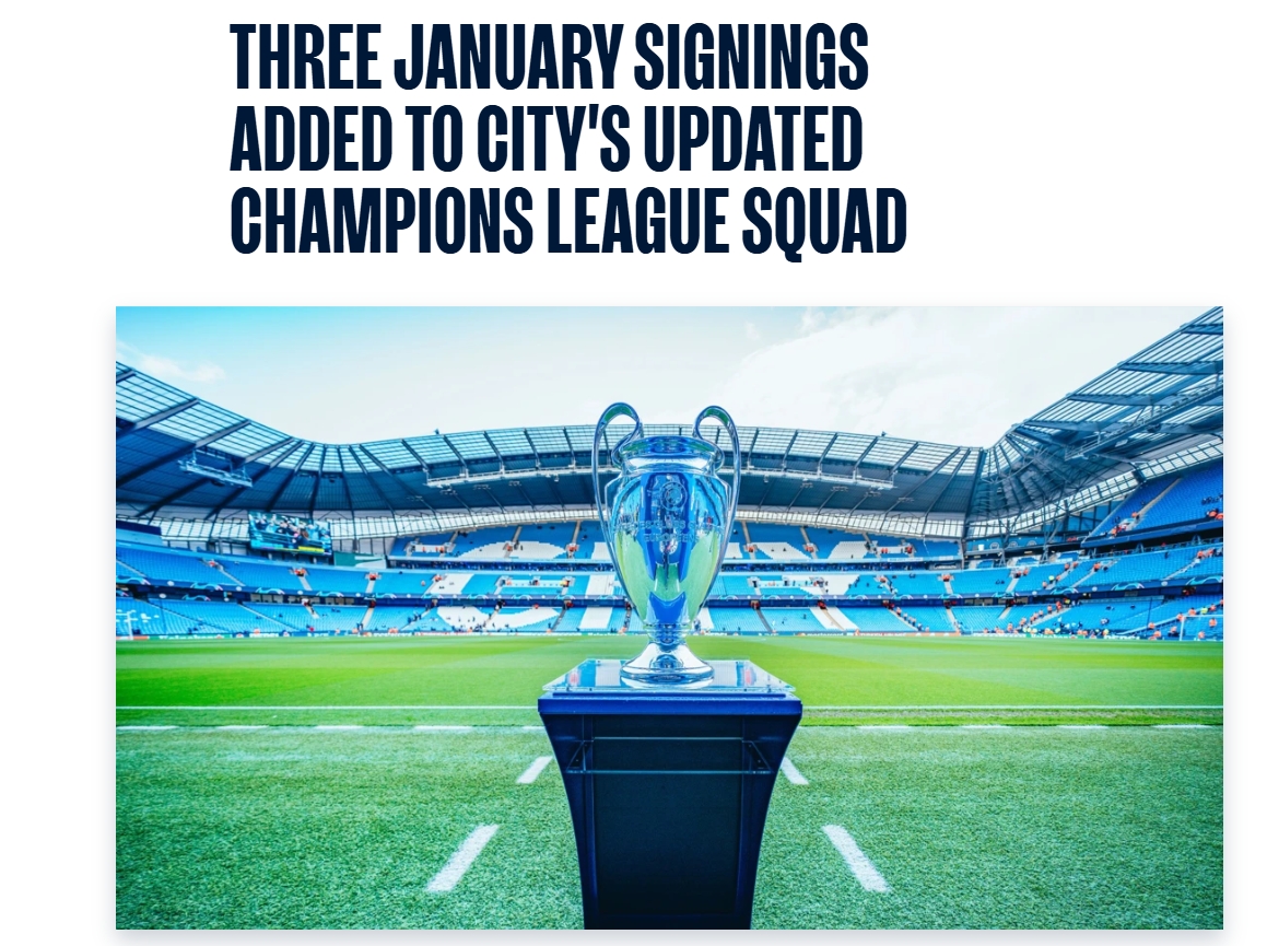 羅德里在列!曼城歐冠名單:胡桑諾夫、馬爾穆什、尼科入選 02月07日訊 曼城官方更新歐冠名單,胡桑諾夫、馬爾穆什、尼科-岡薩雷斯入選,另一名新援雷斯缺席。按照歐冠注冊(cè)規(guī)則,下一個(gè)階段最多注冊(cè)3名新援,因此曼城4名新援只能有3名球員入選。曼城最新歐冠名單門將 2025/02/07
