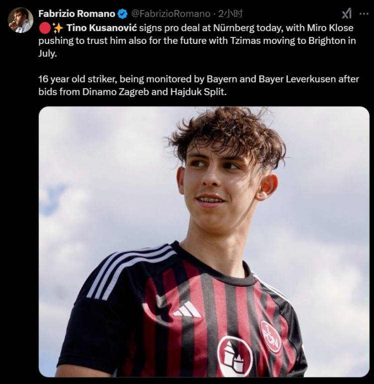 羅馬諾:紐倫堡16歲前鋒庫(kù)薩諾維奇將續(xù)約,拜仁、藥廠持續(xù)關(guān)注 2月7日訊 名記羅馬諾消息,拜仁和勒沃庫(kù)森持續(xù)關(guān)注紐倫堡小將庫(kù)薩諾維奇。該記者透露:“庫(kù)薩諾維奇將在今日和紐倫堡預(yù)簽職業(yè)合同,這得益于主帥克洛澤的推動(dòng)。在齊馬斯將在今夏轉(zhuǎn)投布萊頓的情況下,克洛澤將這位 2025/02/07