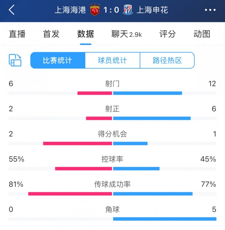 超級(jí)杯半場(chǎng)數(shù)據(jù):射門12-6、射正6-2,申花占優(yōu)無奈比分落后 2月7日訊 2025中國(guó)超級(jí)杯賽,上海海港憑借新外援加布里埃爾的破門,在上半場(chǎng)1-0領(lǐng)先申花。半場(chǎng)數(shù)據(jù)方面,落后的申花更有優(yōu)勢(shì),但海港把握機(jī)會(huì)的能力更強(qiáng)。上海海港1-0上海申花射門:6-12射正:2- 2025/02/07