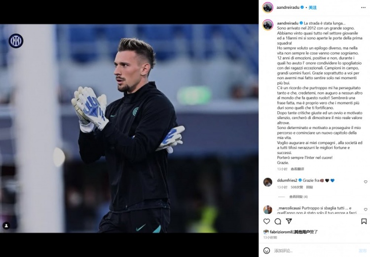 拉杜長(zhǎng)文告別國(guó)米:我一直想要不同結(jié)局,但生活并不總按想法進(jìn)行 2月5日訊 門將拉杜冬窗離開(kāi)國(guó)米,永久轉(zhuǎn)會(huì)加盟威尼斯。在社交媒體中,拉杜長(zhǎng)文告別了國(guó)米。拉杜寫道:“這是一段很長(zhǎng)的道路。2012年,我懷揣偉大的夢(mèng)想來(lái)到了國(guó)米,我們幾乎贏得了青年賽事的所有冠軍。18 2025/02/05