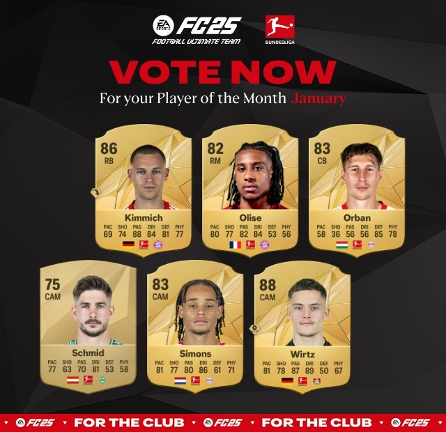 德甲1月最佳球員候選:基米希、維爾茨領(lǐng)銜,西蒙斯、奧利塞在列 2月5日訊 德甲官方公布了一月聯(lián)賽最佳球員候選名單,其中,維爾茨、基米希、哈維-西蒙斯、奧利賽等人入選。德甲1月最佳球員候選及聯(lián)賽數(shù)據(jù)↓基米希(拜仁)——4場(chǎng)2助攻奧利塞(拜仁)——4場(chǎng)1球2助攻奧爾 2025/02/05