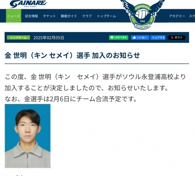 官方:19歲中國(guó)球員金世明加盟J3球隊(duì)鳥(niǎo)取飛翔,將身披28號(hào)球衣 2月5日訊 J3聯(lián)賽球隊(duì)鳥(niǎo)取飛翔今日官方宣布,球隊(duì)正式從韓國(guó)首爾永登浦工業(yè)高中引進(jìn)中國(guó)球員金世明,球員將在2月6日與球隊(duì)會(huì)合,球員新賽季將身披28號(hào)球衣。根據(jù)博主“josehidalgo”介紹,金世明 2025/02/05