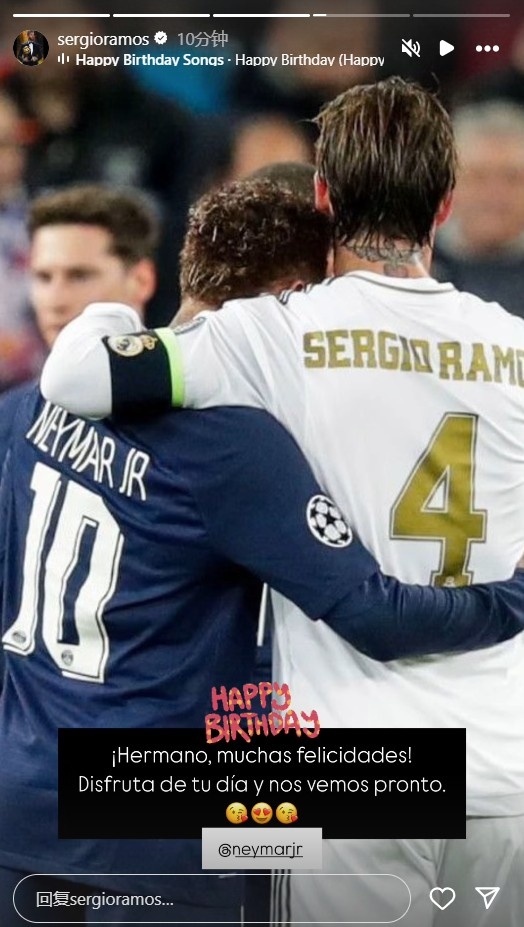 拉莫斯更新社媒動(dòng)態(tài),分別祝賀前隊(duì)友內(nèi)馬爾和C羅生日快樂 2月5日訊 今天內(nèi)馬爾迎來33歲生日,C羅迎來40歲生日。拉莫斯更新動(dòng)態(tài),向兩位前隊(duì)友表示了祝賀。拉莫斯曬與同內(nèi)馬爾的同框照,并表示道:“祝賀兄弟!享受你的這一天吧,我們回頭見?!崩挂矔癯鐾珻羅在 2025/02/05