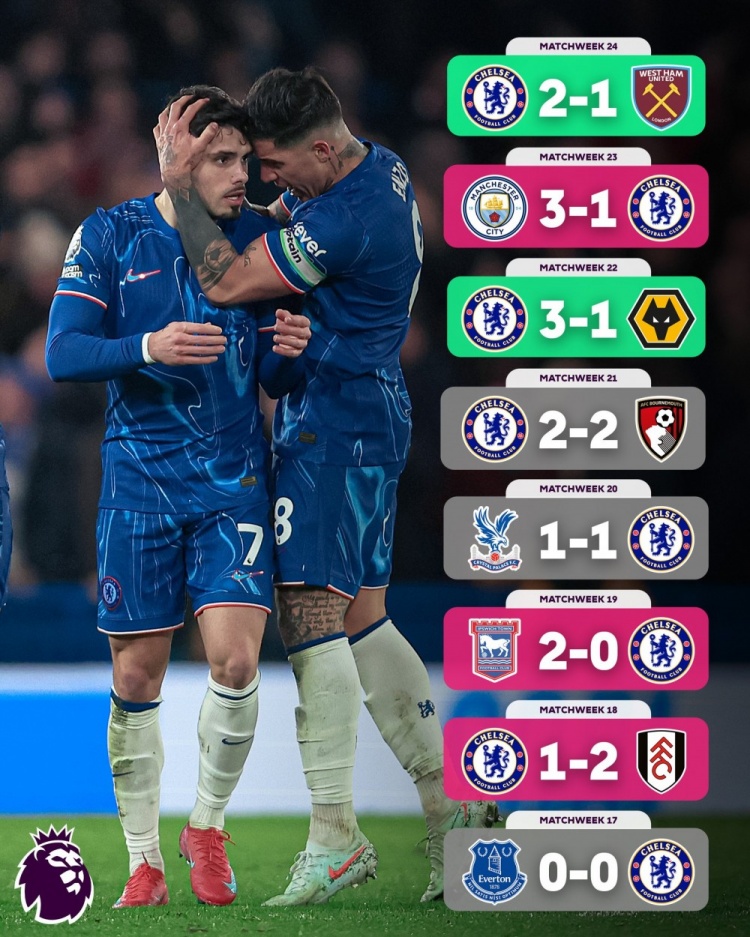 2勝3平3負(fù)!英超官方曬切爾西戰(zhàn)績(jī):近8場(chǎng)聯(lián)賽僅取勝2場(chǎng) 2月4日訊 英超第24輪比賽,切爾西主場(chǎng)2-1擊敗西漢姆。英超官方曬出了切爾西近8場(chǎng)英超比賽的戰(zhàn)績(jī),8場(chǎng)比賽藍(lán)軍僅取勝2場(chǎng),具體戰(zhàn)績(jī)2勝3平3負(fù)。不過(guò)近3場(chǎng)英超比賽切爾西2勝1負(fù),似乎狀態(tài)有所回暖。 2025/02/04