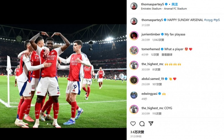 2025年10月22日 13分鐘4球!阿森納4-0橫掃馬競(jìng)?cè)W冠3連勝 約克雷斯雙響加布破門