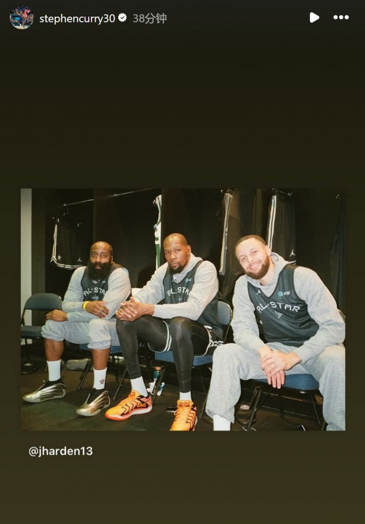 三個老炮!哈登曬自己、杜蘭特和庫里合照 庫里轉(zhuǎn)發(fā)