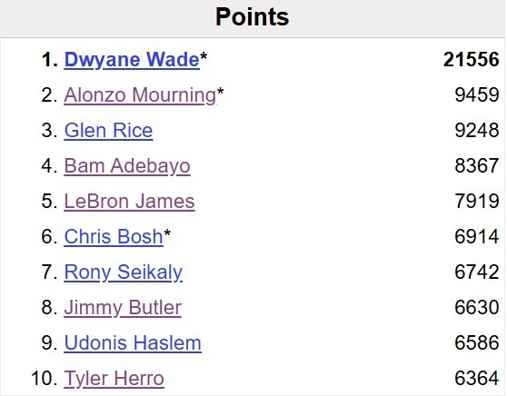 (注:詹姆斯在熱火得分排名第五、上圖錯(cuò)誤)