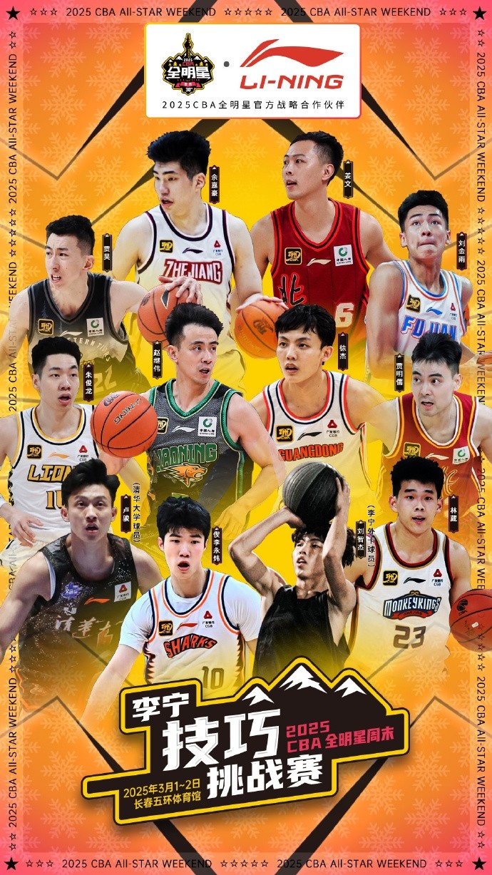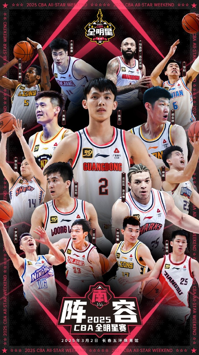 2月20日訊 CBA官方宣布了2025CBA全明星周末的陣容名單,詳情如下: