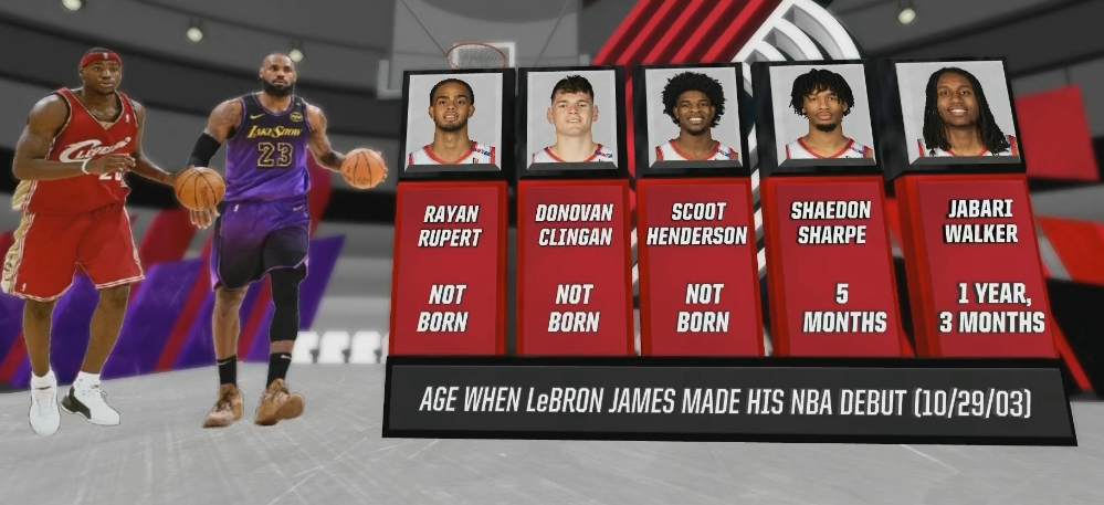 詹姆斯首秀時(shí),開拓者球員呂佩爾、克林根和亨德森都還沒出生