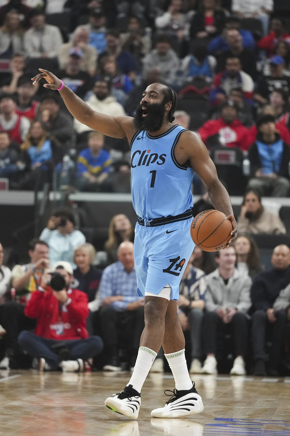 在本場(chǎng)比賽中,哈登生涯總得分突破27000,歷史第十三人。