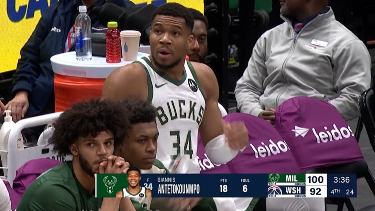 有點(diǎn)懵!字母哥今日出戰(zhàn)19分鐘犯滿離場(chǎng) 吃帽后被吹第6犯