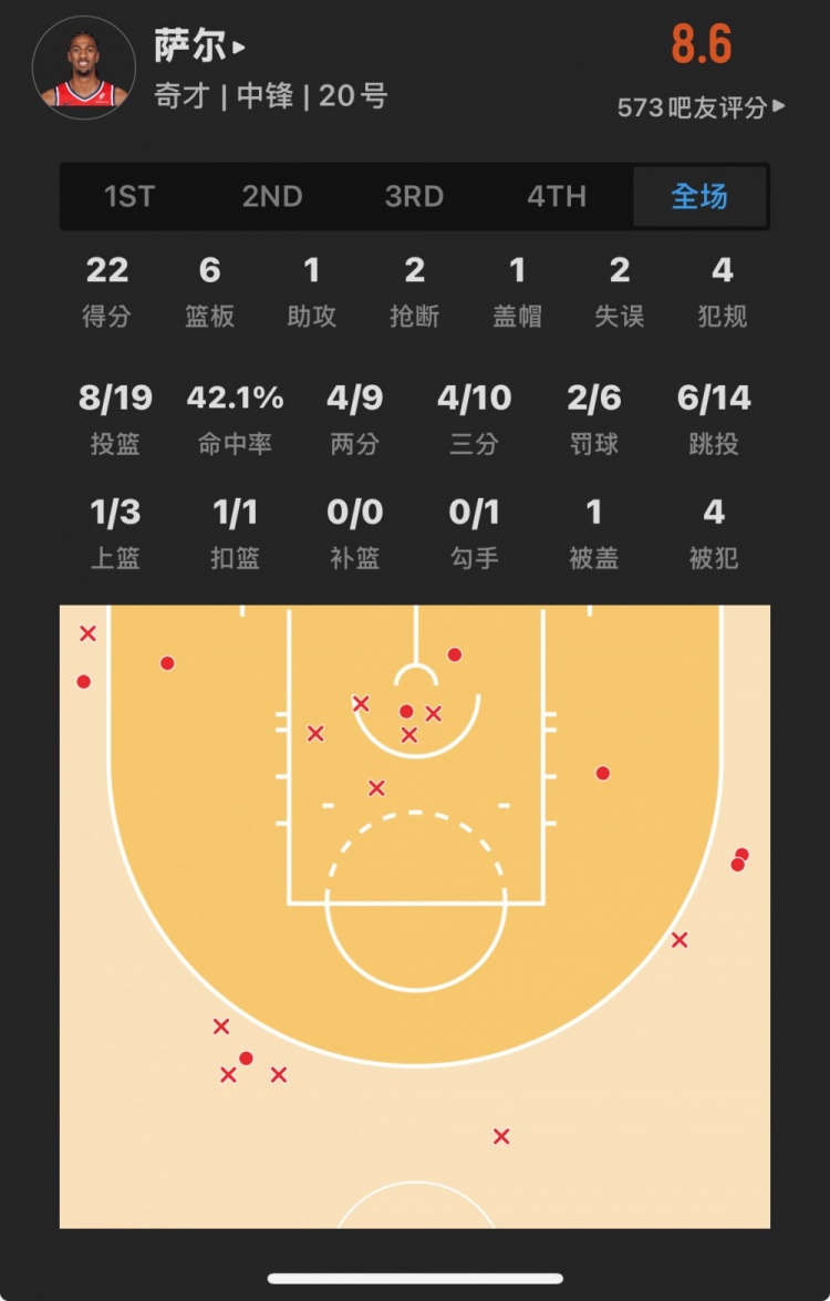 馬刺4號秀 斯蒂芬-卡斯爾 登場13.0分鐘