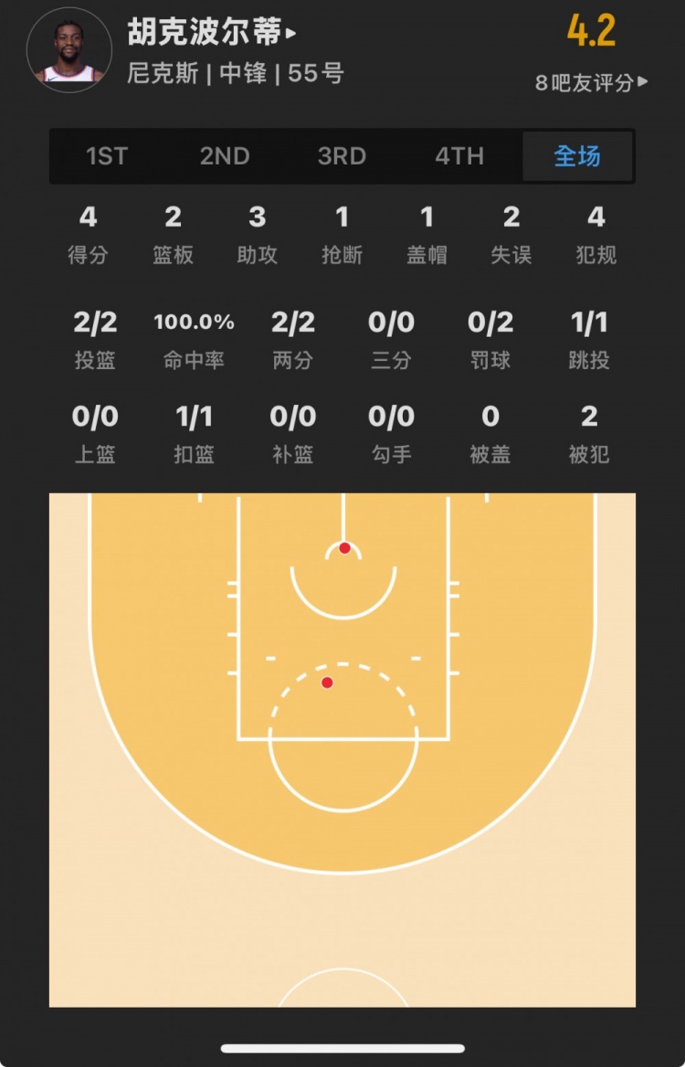 尼克斯58號秀 阿里埃爾-胡克波爾蒂 登場19.2分鐘