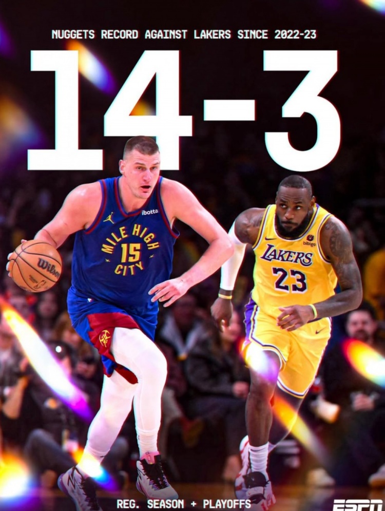 今日刀兵相見!自2022-23賽季以來 掘金對陣湖人合計取得14勝3負