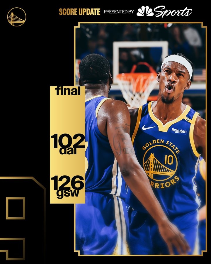 賽后勇士官方曬出贏球海報,本場有著出色發(fā)揮的追夢和巴特勒登上封面。