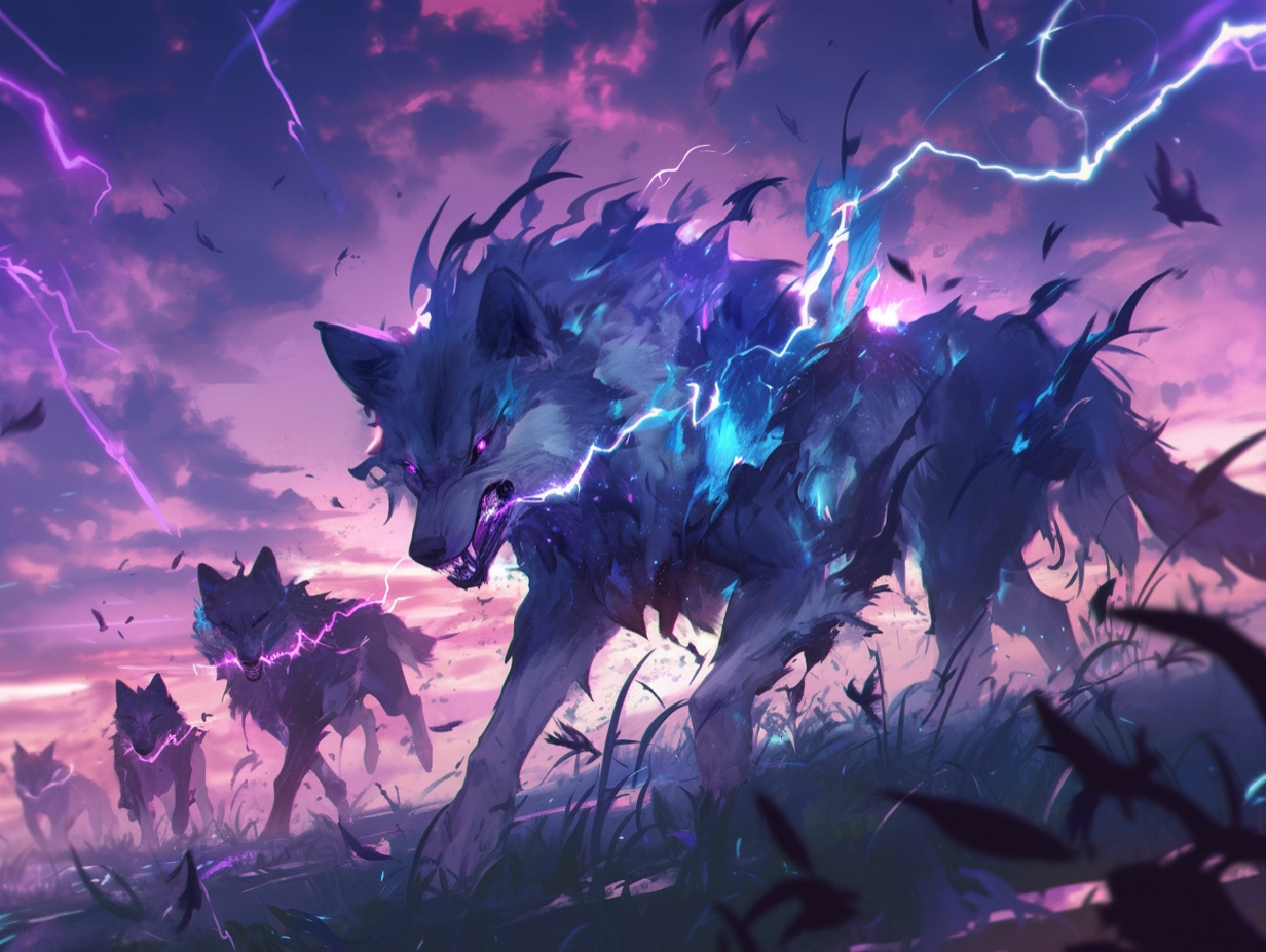 【AI繪圖】撕裂蒼穹!狼群化身雷電主宰~