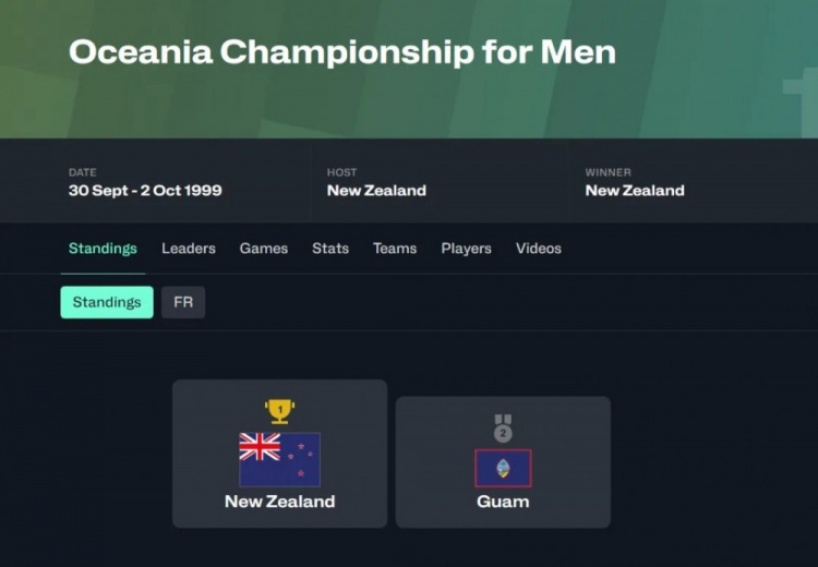 1999年,關(guān)島唯一一次參加大洋洲籃球錦標(biāo)賽,這個(gè)比賽是奧運(yùn)會(huì)大洋洲參賽名額的預(yù)算賽,一般都是澳新二人轉(zhuǎn),但2000年澳大利亞是奧運(yùn)會(huì)東道主直接晉級,關(guān)島被迫參賽,取得了第二名的歷史最好成績