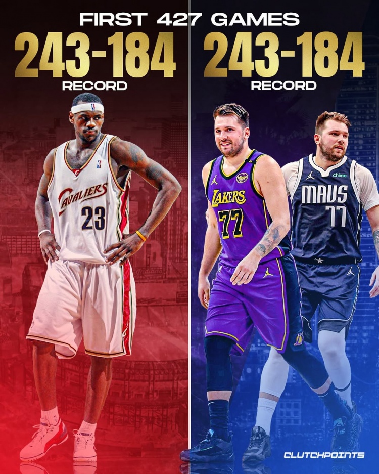 巧合還是命運(yùn)?生涯前427戰(zhàn)詹姆斯和東契奇皆243勝184負(fù)
