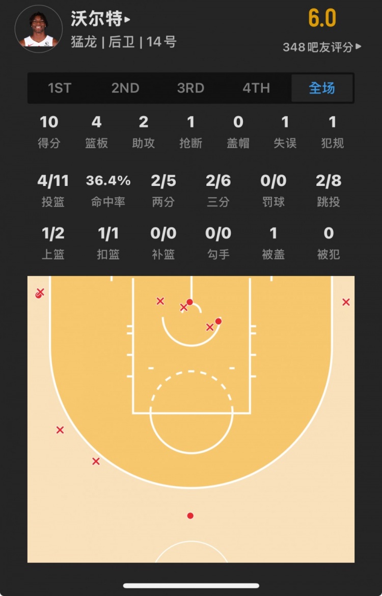 猛龍19號秀 賈科比-沃爾特 登場21.4分鐘