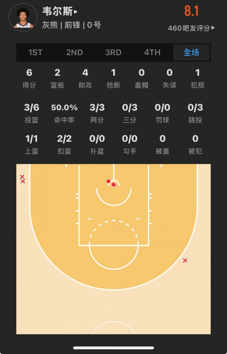 灰熊39號秀 杰倫-韋爾斯 登場30.9分鐘