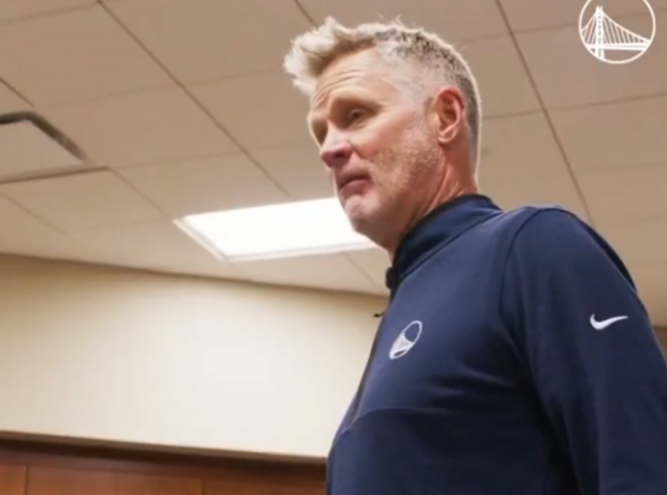 2月28日訊 勇士今日在客場(chǎng)17分大逆轉(zhuǎn)、121-115戰(zhàn)勝魔術(shù)。賽后科爾在更衣室內(nèi)表?yè)P(yáng)球員。