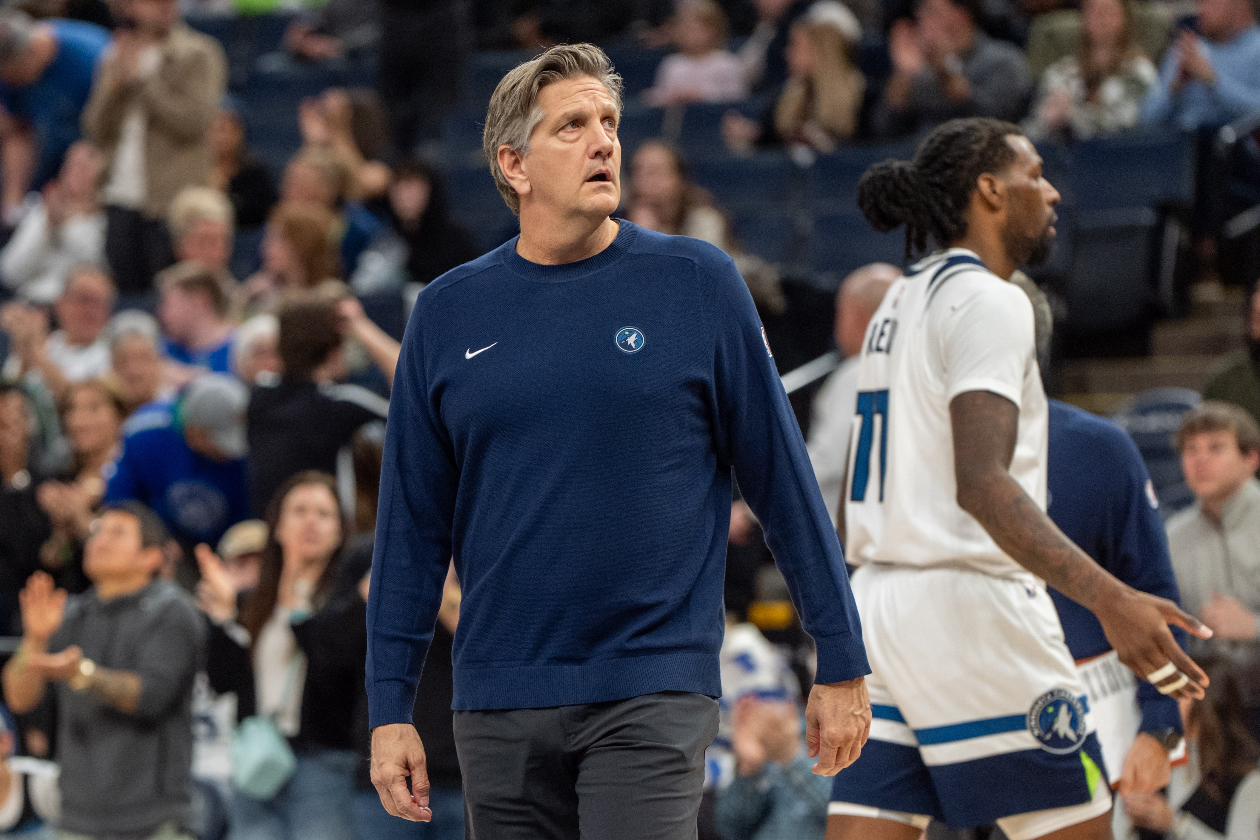 賽后,記者邀請(qǐng)森林狼主帥芬奇談一談技犯,芬奇表示:“不要引誘我去談?wù)撆辛P,是怎樣就是怎樣,每天都是這樣(Don't try to bait me into... about officiating, like uh, it is what it is on a nightly basis)。我壓根沒聽到里德說了什么?!?/p>