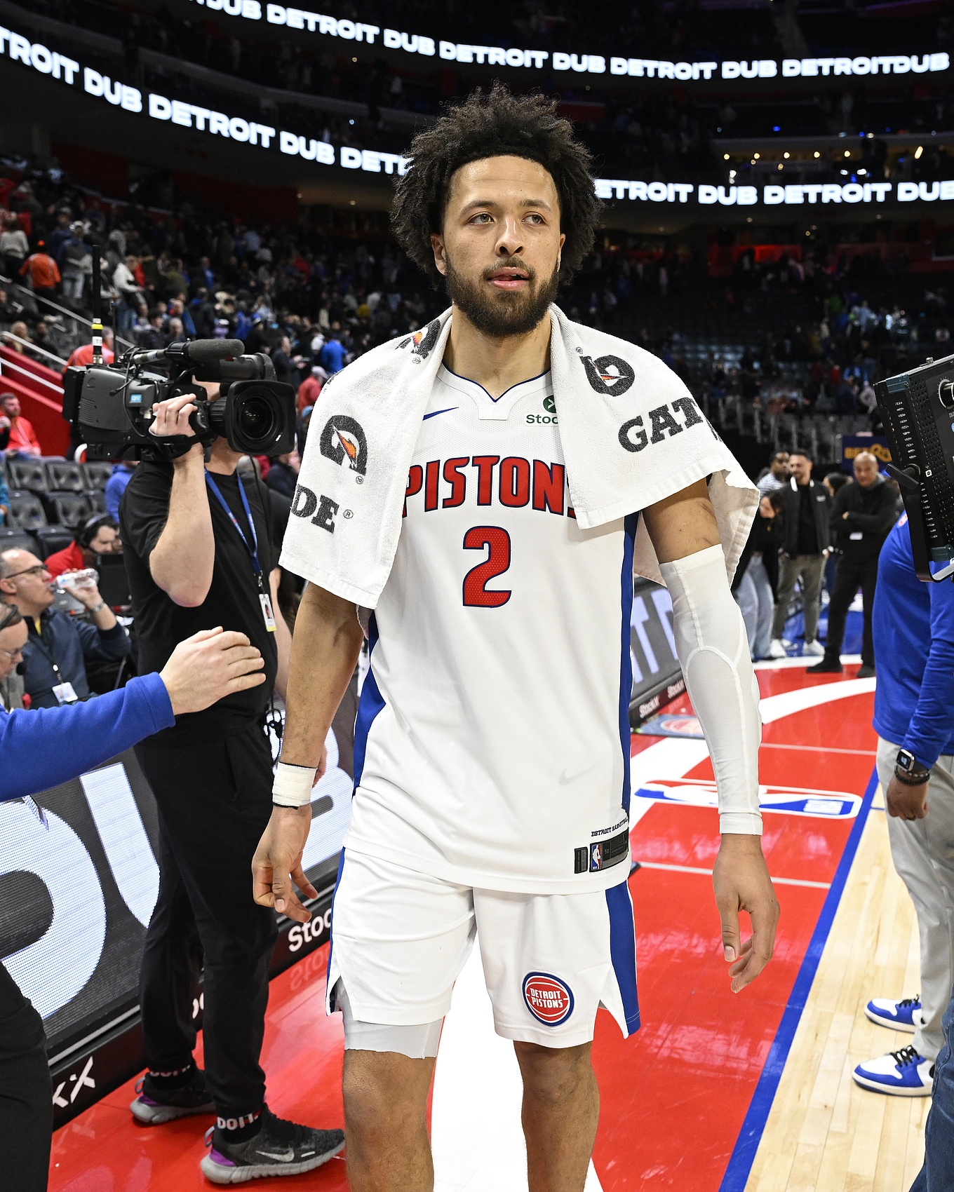 那天晚上晚些時(shí)候,在活塞的更衣室里,康寧漢姆走到自己的更衣柜前,把一條毛巾搭在肩上。他看起來并不沮喪。球員們當(dāng)然會(huì)失望,但氣氛仍然輕松。隊(duì)友們?cè)陔x開前互相擊掌。