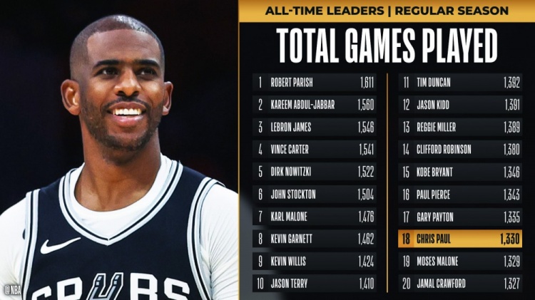 這樣一來,保羅生涯常規(guī)賽出場數(shù)達(dá)到1330場,超越摩西-馬龍獨(dú)占?xì)v史第18位置,下一步將追逐加里-佩頓(1335場)。