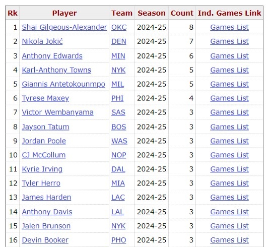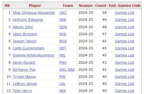 SGA目前59場20+,聯(lián)盟第一!