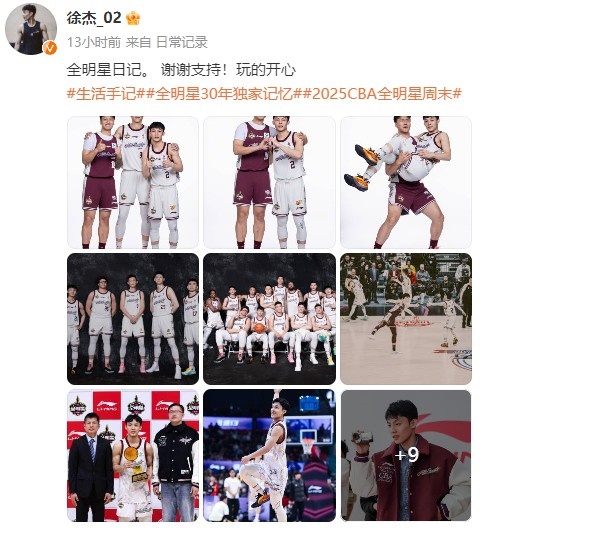 徐杰曬照回顧長(zhǎng)春全明星之旅:全明星日記 謝謝支持 玩得開心