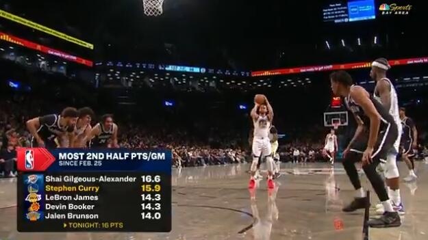 2月25日以來下半場(chǎng)場(chǎng)均得分:庫里15.9僅次于SGA 詹姆斯排第三