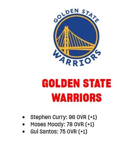 勇士球員2K能力值更新:庫里+1至96 穆迪&桑托斯也各+1