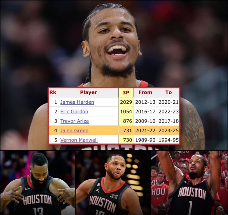 杰倫-格林生涯三分命中數(shù)已經(jīng)超越弗農(nóng)-麥克斯維爾,火箭隊史第四,僅次于哈登、埃里克-戈登和阿里扎(具體數(shù)據(jù)如圖所示)。 標(biāo)簽: 籃球 NBA 火箭 杰倫-格林 哈登