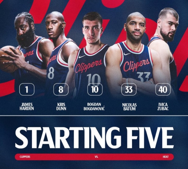快船首發(fā):哈登、鄧恩、博格丹-博格達(dá)諾維奇、巴圖姆、祖巴茨。