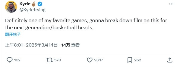 3月14日訊 此前,美媒發(fā)布了歐文5年前對陣公??诚?4分的集錦,歐文今天在社媒上進行了回復。