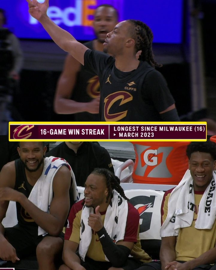 轉(zhuǎn)播方給出數(shù)據(jù),騎士的16連勝也是自2023年3月的雄鹿以來(lái),聯(lián)盟最長(zhǎng)的連勝紀(jì)錄。