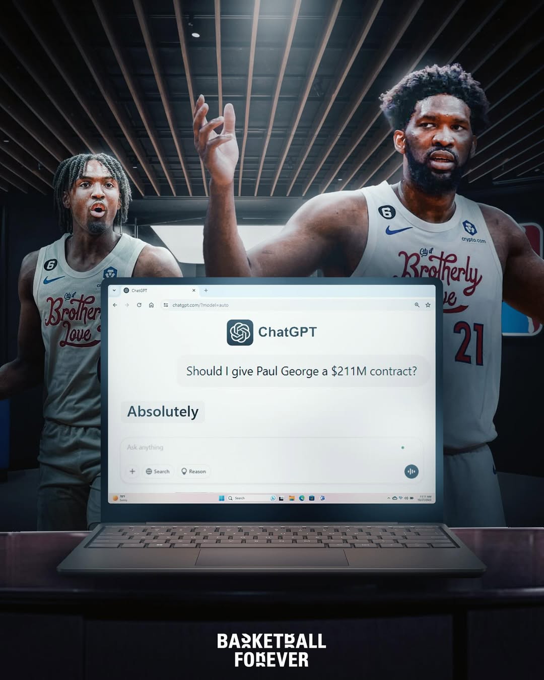 他隨后提到了76人隊(duì)使用LLM(大型語言模型)人工智能模型,特別是該團(tuán)隊(duì)愿意嘗試這項(xiàng)技術(shù)的例子。