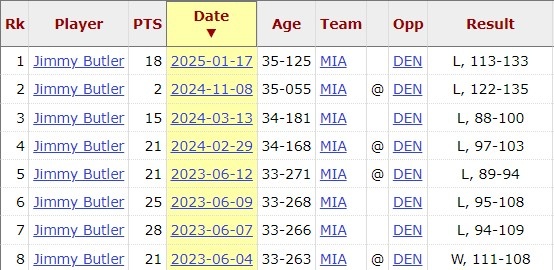 此役告負(fù)后,巴特勒個(gè)人對(duì)掘金是8連敗,上次贏球還是2023年總決賽G2。