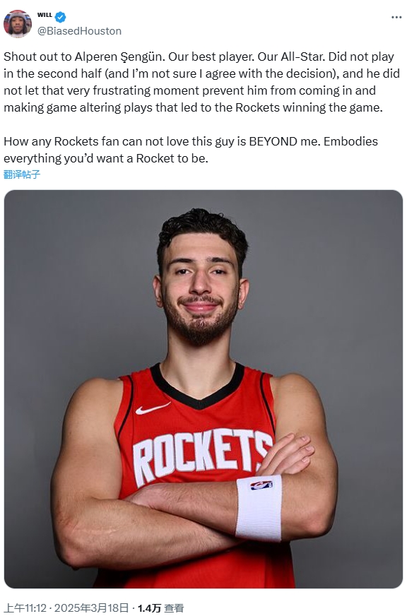 賽后,火箭的一位球迷評(píng)論道:“向申京致敬。他是我們最好的球員,我們的全明星。盡管下半場沒有上場(我對(duì)此決定并不完全贊同),但他并沒有讓這一令人沮喪的時(shí)刻影響自己,他在關(guān)鍵時(shí)刻挺身而出,為火箭贏得了比賽。任何火箭球迷如果不愛這個(gè)小伙子,那真是難以理解。他完美地展現(xiàn)了火箭球員應(yīng)有的所有品質(zhì)?!?/p>