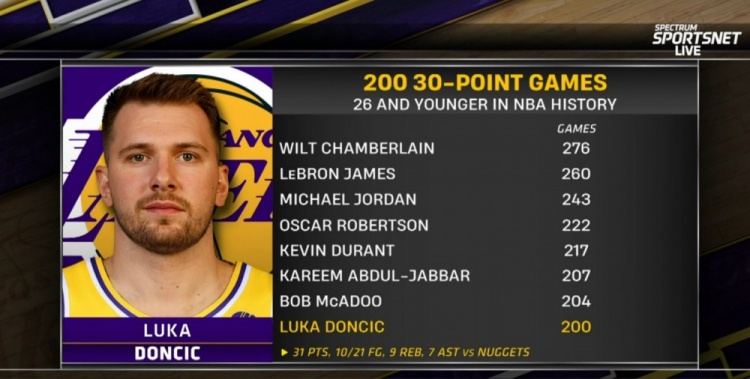 東契奇27歲前200場(chǎng)30+ 歷史第8多 詹姆斯第2 喬丹第3 KD第5