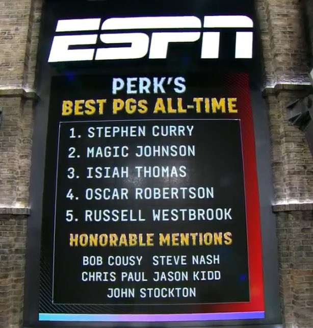 3月20日訊 近日,評論員帕金斯在節(jié)目上列出了他心目中歷史前5的控衛(wèi)。