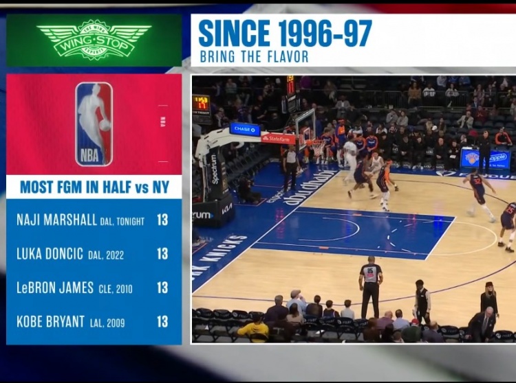 據(jù)統(tǒng)計,自1996-97賽季(有統(tǒng)計)以來,馬紹爾在對陣尼克斯的半場進了13球,追平了科比、詹姆斯和東契奇,并列第一。