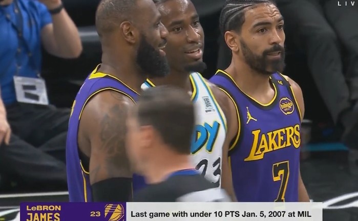 截至三節(jié)比賽,詹姆斯6投0中僅依靠罰球得到3分!他已經(jīng)連續(xù)1282場(chǎng)比賽連續(xù)得分上雙。