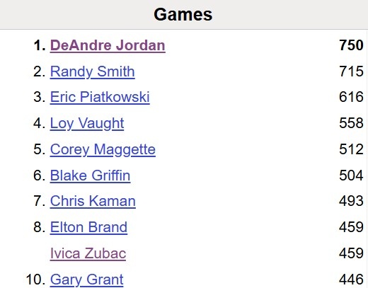 據(jù)統(tǒng)計(jì),這是祖巴茨代表快船出戰(zhàn)的第460場(chǎng)比賽,超越埃爾德-布蘭德,上升至隊(duì)史第八位。