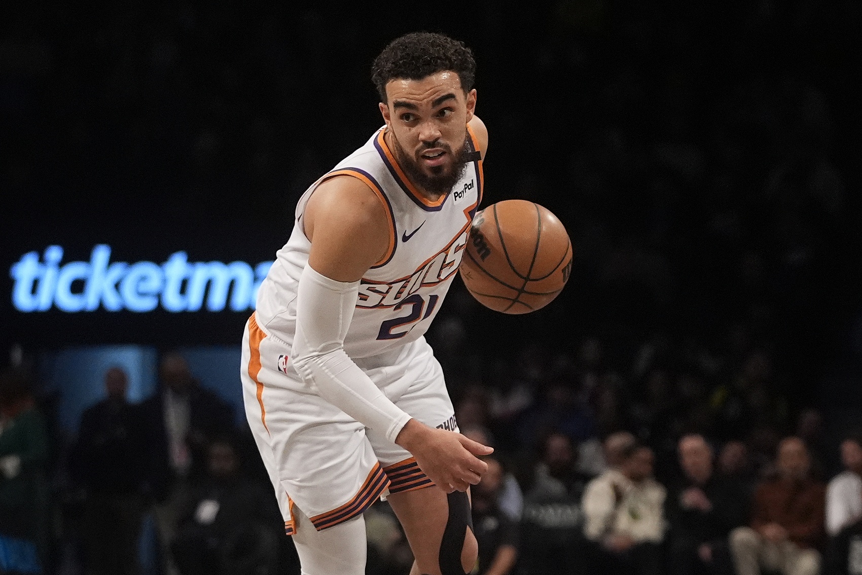 本賽季,泰厄斯-瓊斯代表太陽出戰(zhàn)49場,場均29.3分鐘,貢獻(xiàn)10.9分2.3籃板5.8助攻0.9搶斷。