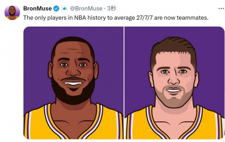 歷史唯二!美媒:詹姆斯&東契奇生涯場(chǎng)均至少27分7板7助 如今聯(lián)手