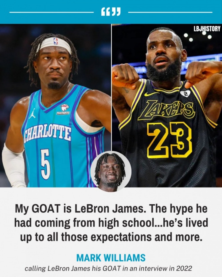 網友挖出了馬克-威廉姆斯2022年稱贊詹姆斯的言論,他說道:“我的GOAT是勒布朗-詹姆斯,他從高中畢業(yè)后就打出了足夠的聲勢,他已經滿足了所有的外界期待,甚至超越了外界期待。還有他的場外成就,建造一所學校,鼓勵他的社區(qū),所有的這些事情都讓他成為GOAT。”