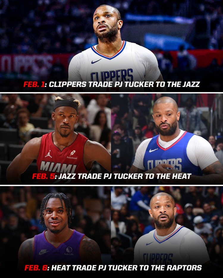 2月7日,猛龍從熱火交易得到塔克