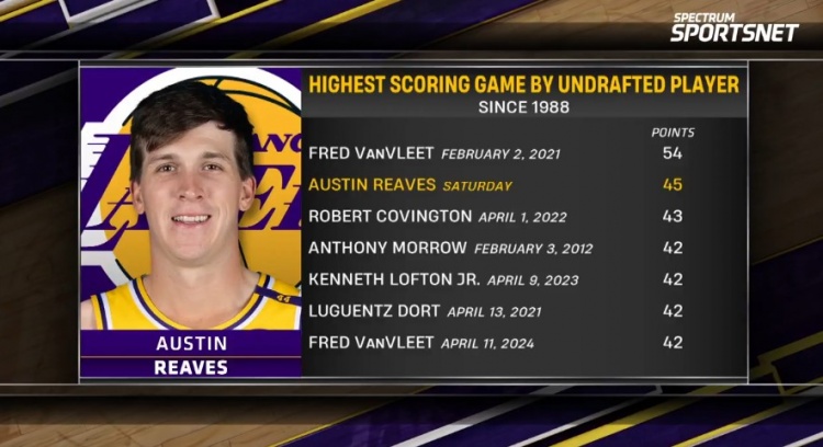 據(jù)統(tǒng)計,單場45分是NBA歷史落選秀單場第二高得分,僅次于范弗里特的54分。